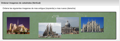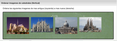 Este tipo de ejercicio consiste en colocar en orden un conjunto de imagenes. Para resolver el ejercicio se utiliza el ratón mediante operaciones de >arrastrar y soltar se consiguen mover las imagenes que aparecen en pantalla hasta ponerlas en el orden deseado.